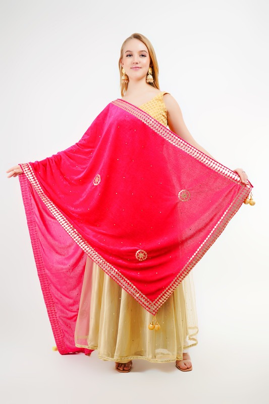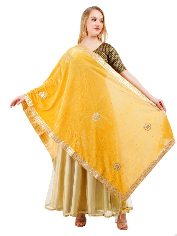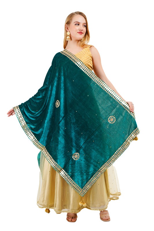 Velvet Dupatta Gota Patti Work Embroidery Chunni Hijab Scarf Party Wrap