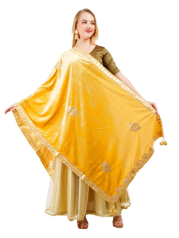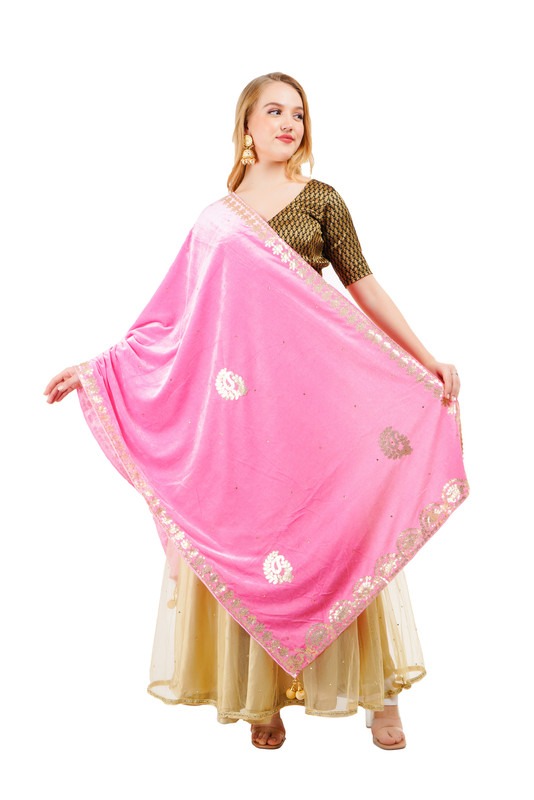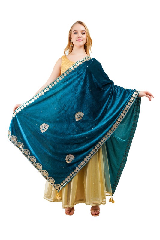 Velvet Dupatta Gota Patti Work Embroidery Chunni Hijab Scarf Party Wrap For Wedding