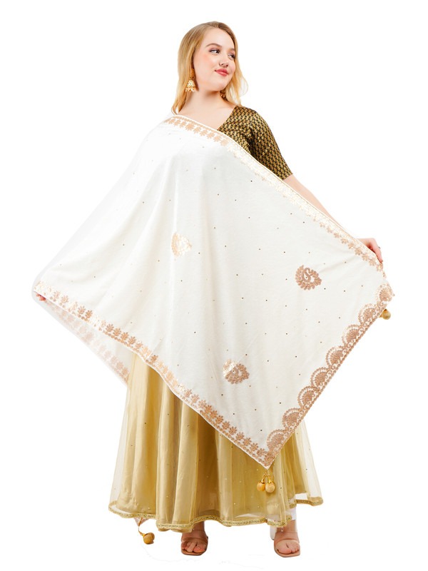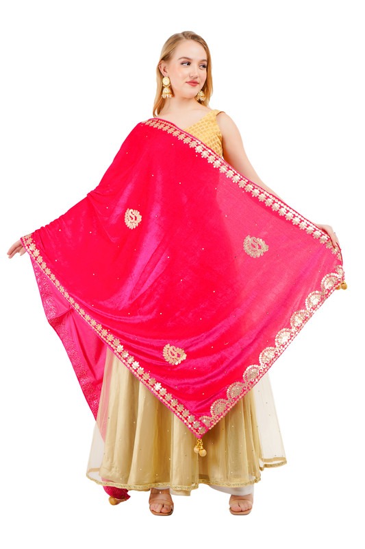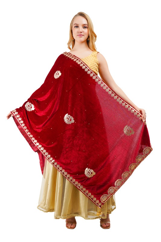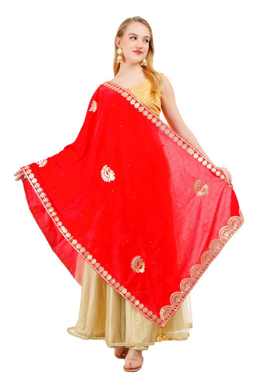 Velvet Dupatta Heavy Gota Patti Leaf Work Chunni Hijab Scarf Party Wrap